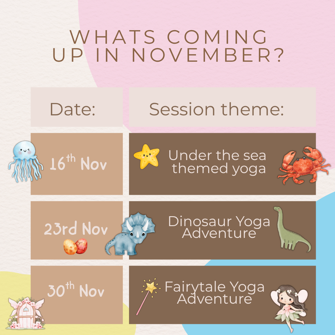 Browse our unique and exciting themes for November's classes, ensuring there is something for everyone.